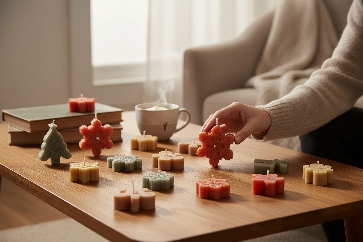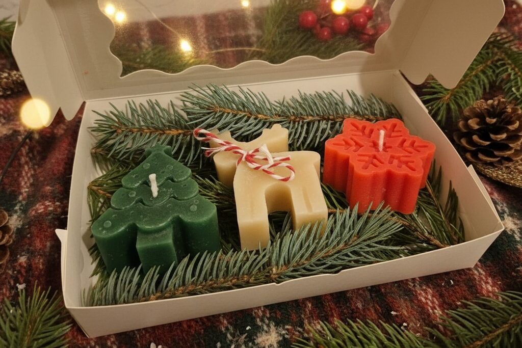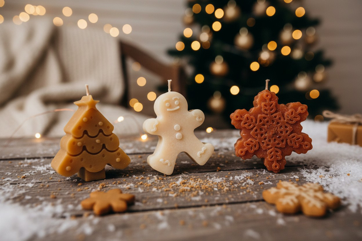 Każda świeca — renifer, choinka, śnieżynka czy pierniczek — jest małą figurką, która zachwyca subtelnymi detalami i naturalnym charakterem.