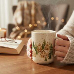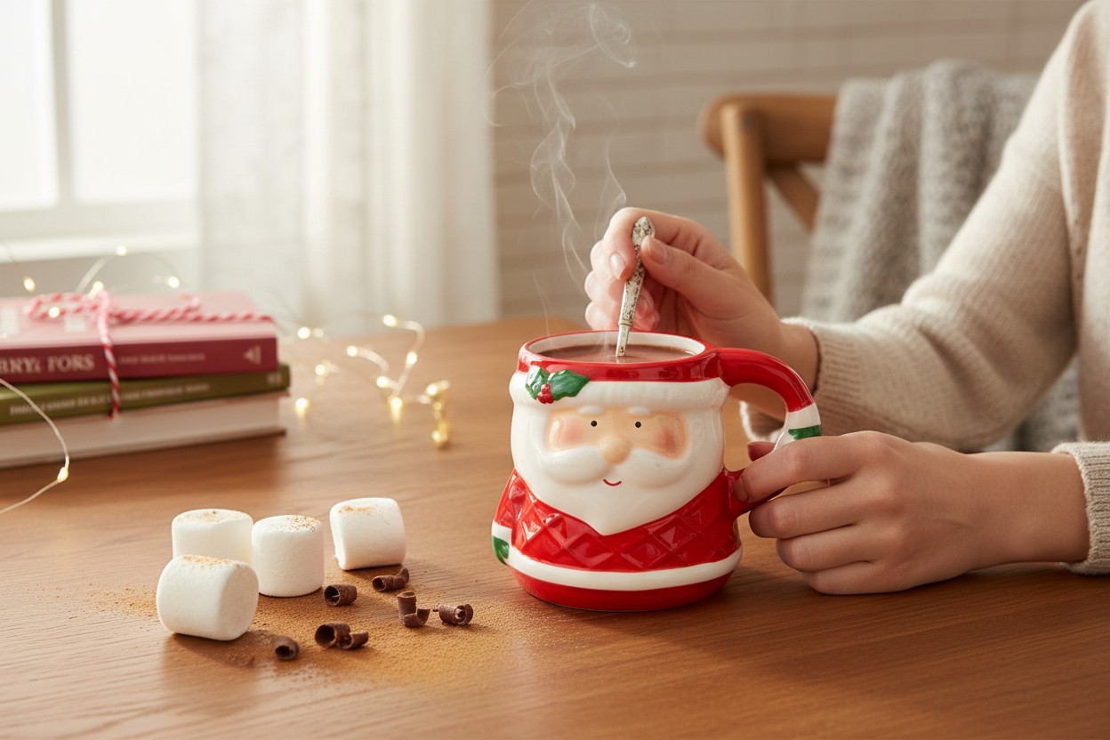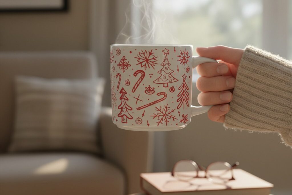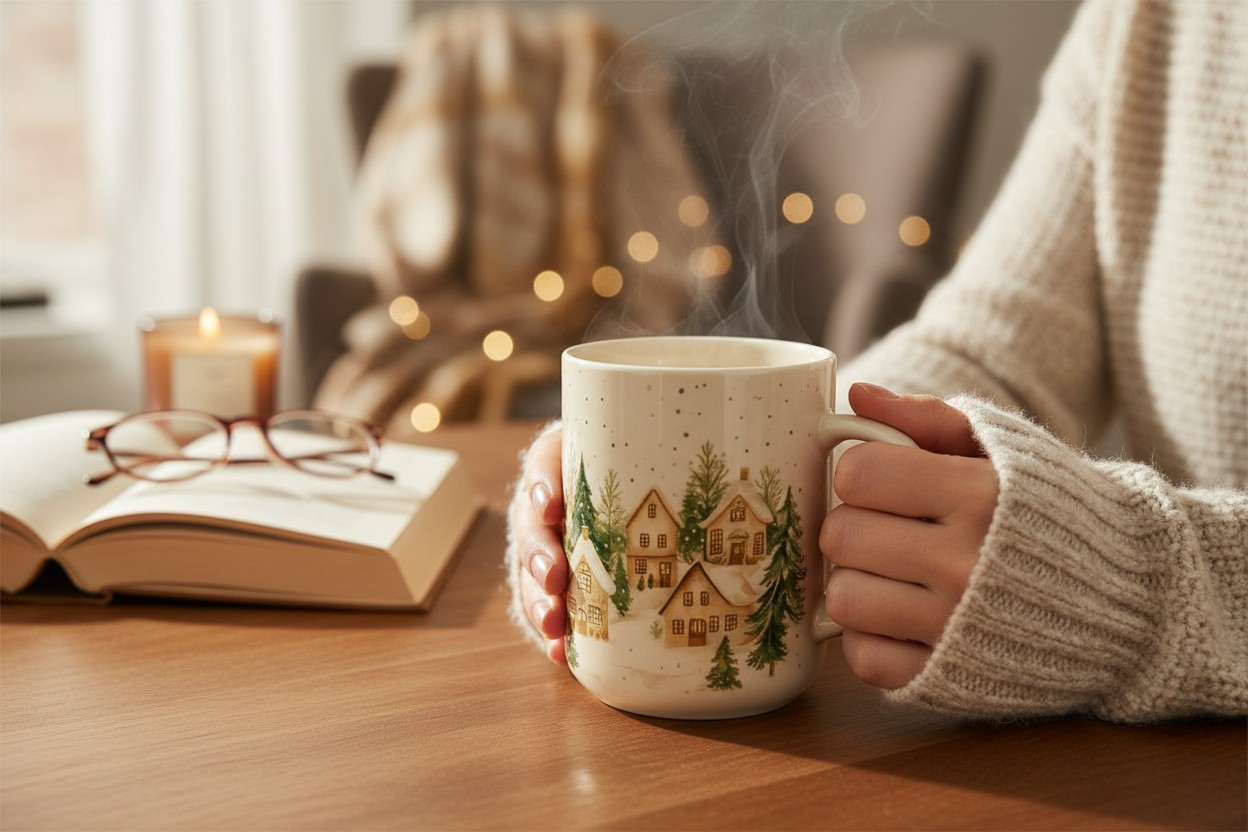 W grudniowe poranki liczą się drobiazgi: zapach świeżo zaparzonej kawy, ciepły sweter i kubek, który przywołuje atmosferę świątecznego domu.