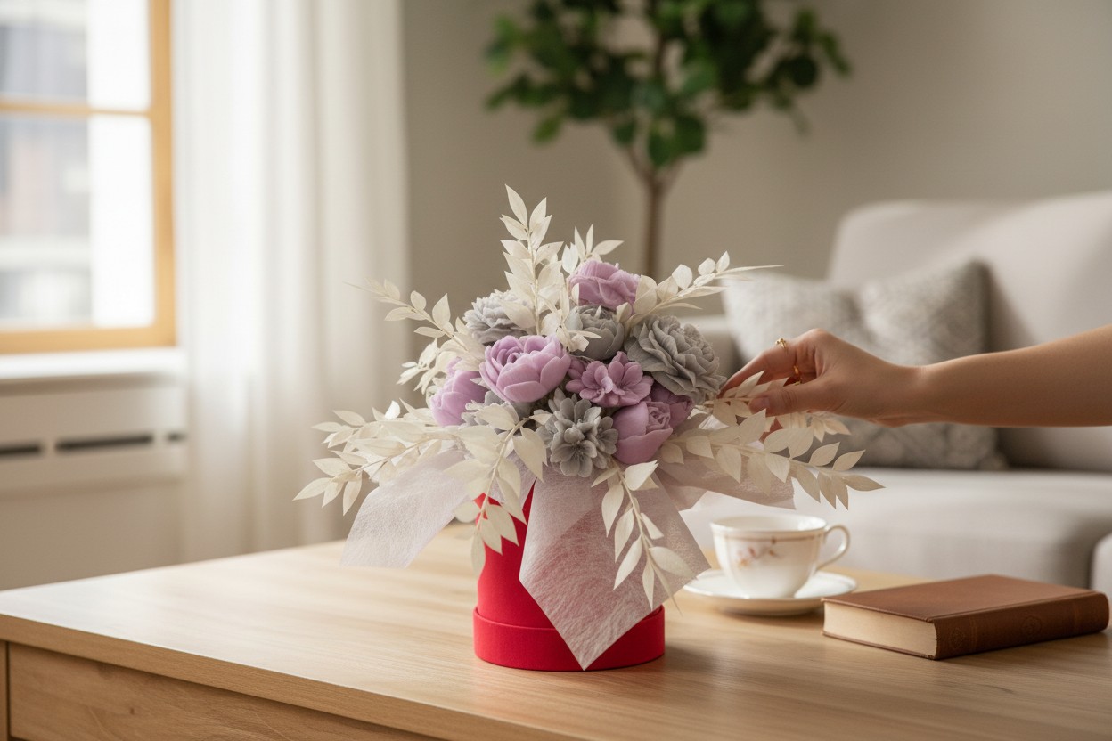 Z tej myśli powstał Flowerbox ze świecowych kwiatów — kompozycja, która nie więdnie, nie traci uroku i zachowuje swoją formę przez wiele miesięcy.