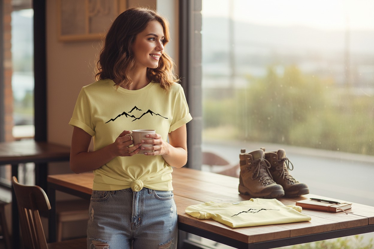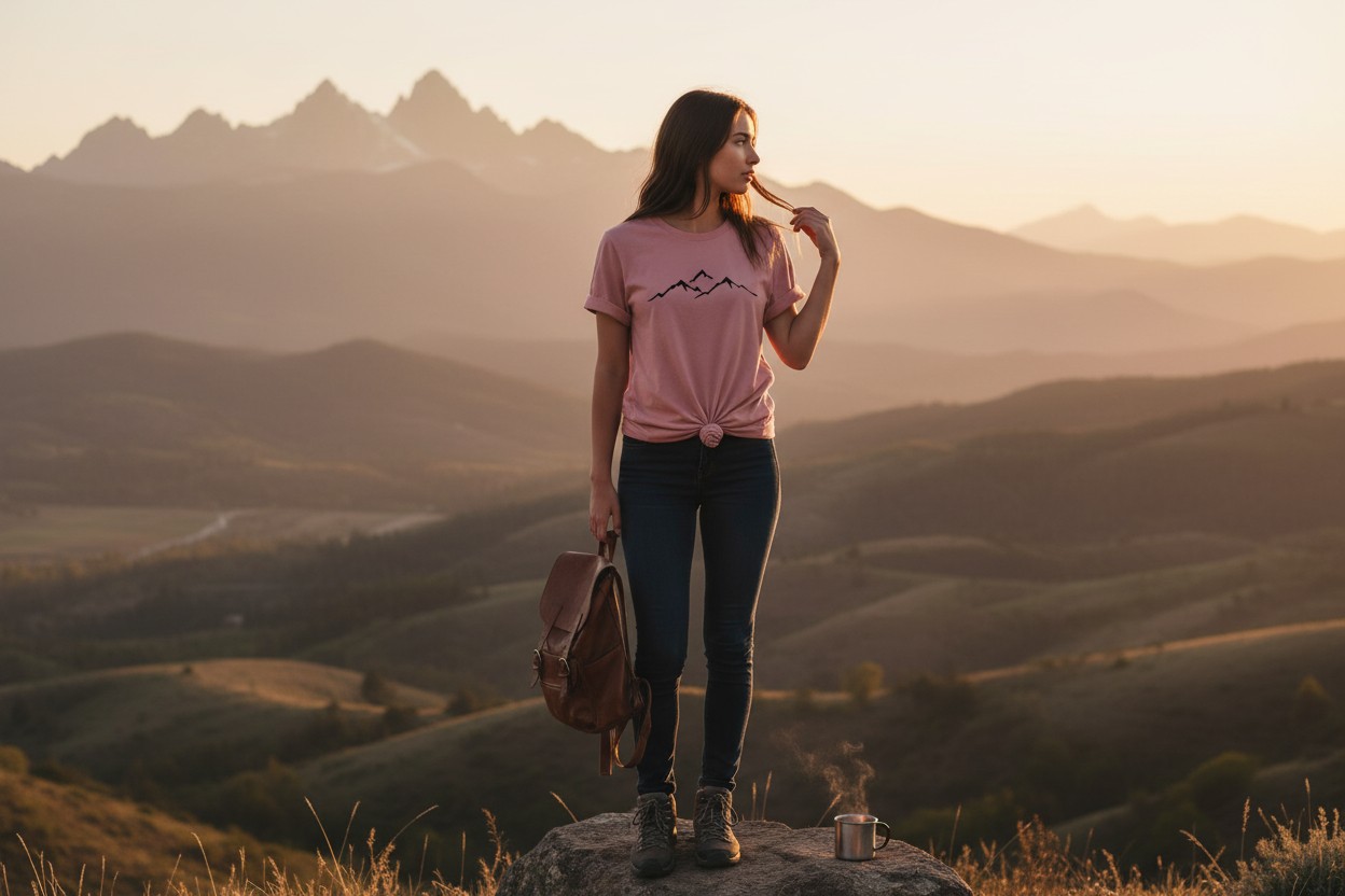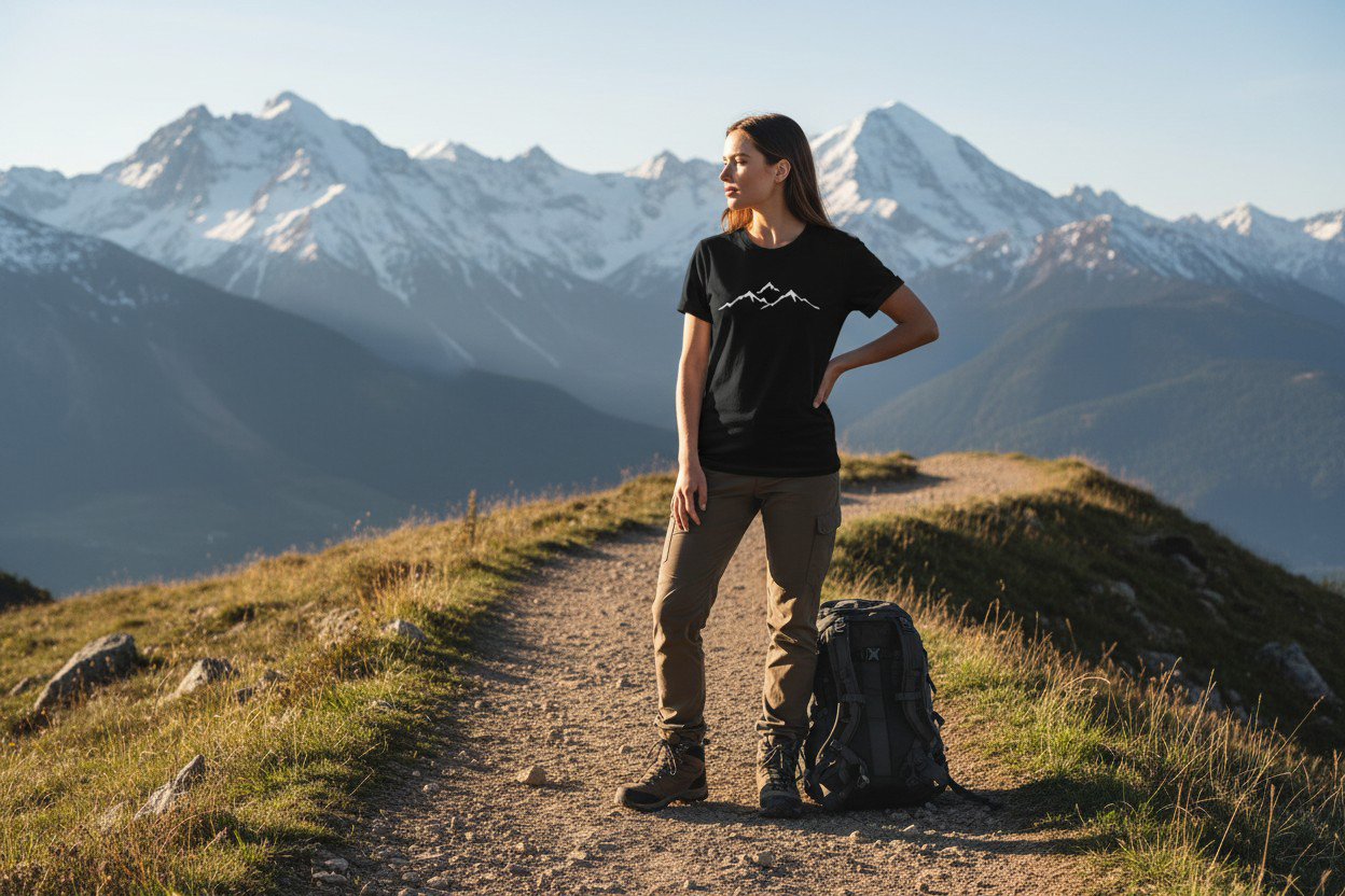 Koszulka Górski Minimalizm to oddech świeżego powietrza – subtelny, lekki i wyjątkowo elegancki wzór dla kobiet kochających góry, wędrówki i harmonię natury. Delikatny kontur gór sprawia, że koszulka pasuje zarówno do codziennych stylizacji, jak i weekendowych wypraw.