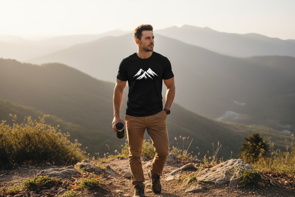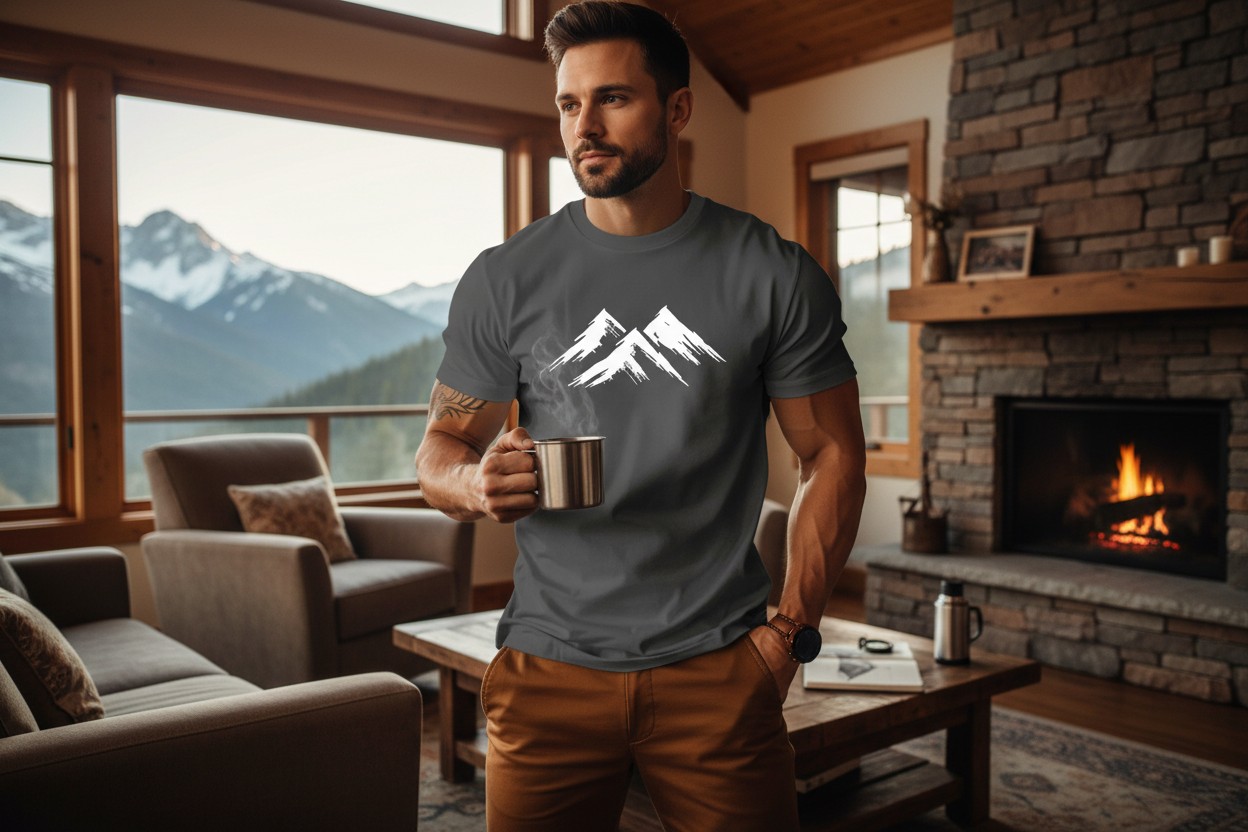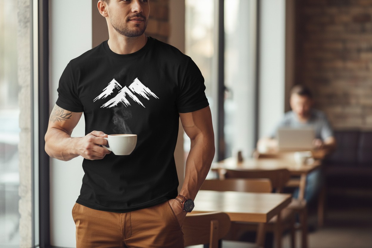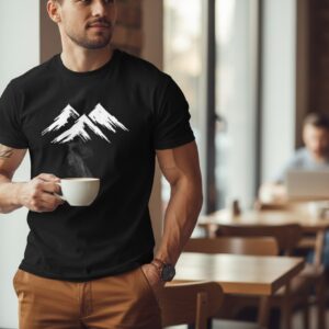 Koszulka stworzona dla mężczyzn, którzy kochają góry i wolą ubierać na sobie spokój natury zamiast krzykliwych grafik. Prosty, charakterystyczny górski szczyt — jak odręczna kreska pozostawiona na mapie po kolejnej wyprawie.