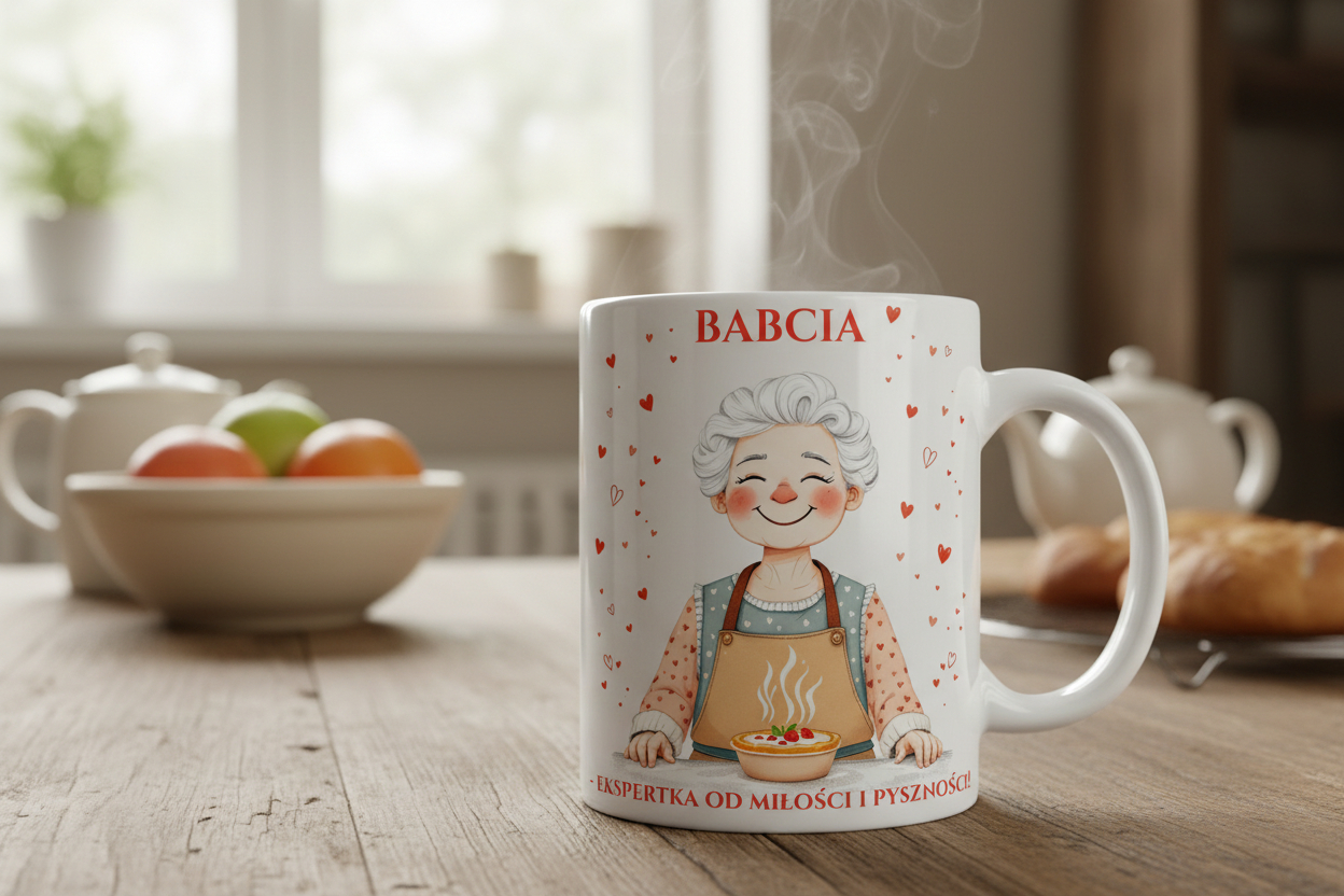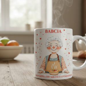 Podaruj Babci coś, co każdego dnia przypomni jej, jak bardzo ją kochasz. Ten elegancki kubek ceramiczny o pojemności 330 ml został stworzony z myślą o wyjątkowych kobietach w naszym życiu. Na kubku widnieje napis: „Babcia – ekspertka od miłości i pyszności!”, który w humorystyczny i ciepły sposób oddaje rolę Babci w rodzinie.