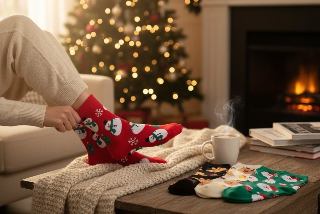 Magiczne Kroki to świąteczne skarpetki stworzone z myślą o tych, którzy kochają miękkość, wygodę i zimowe detale.