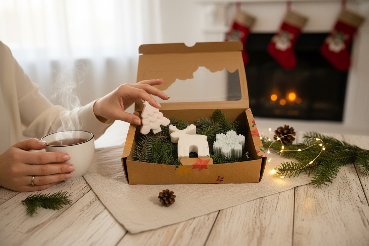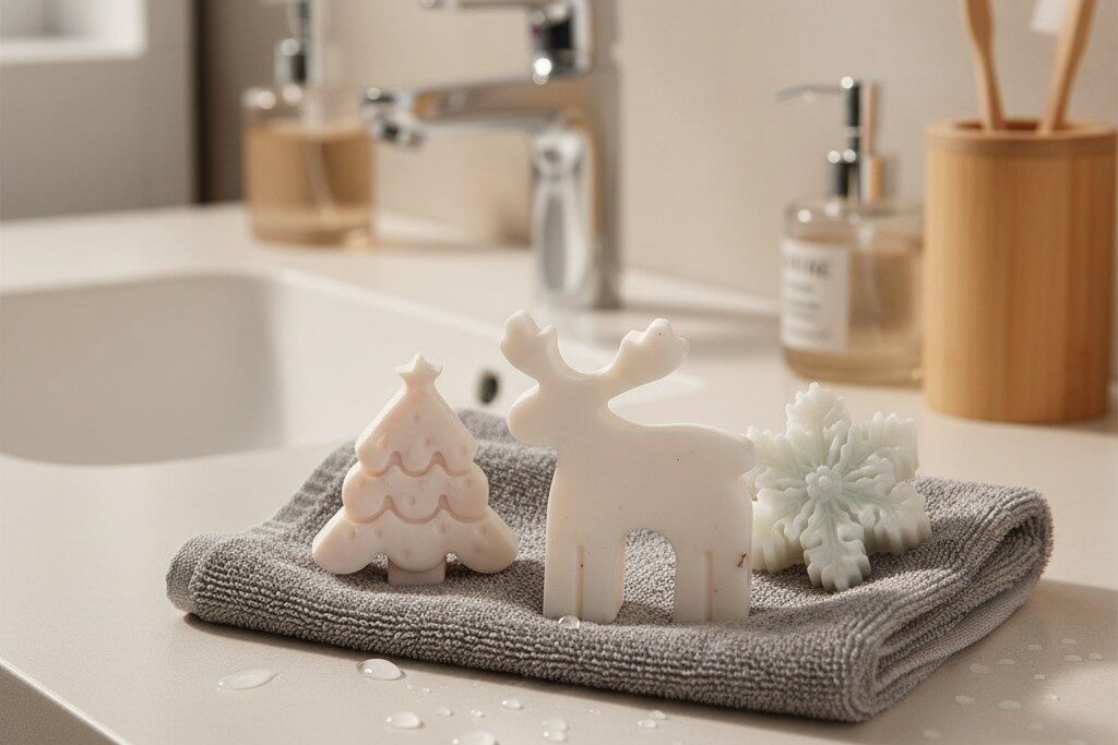 Każde mydełko powstaje ręcznie, dlatego każde jest nieco inne — jak prawdziwy, zimowy okruszek magii.