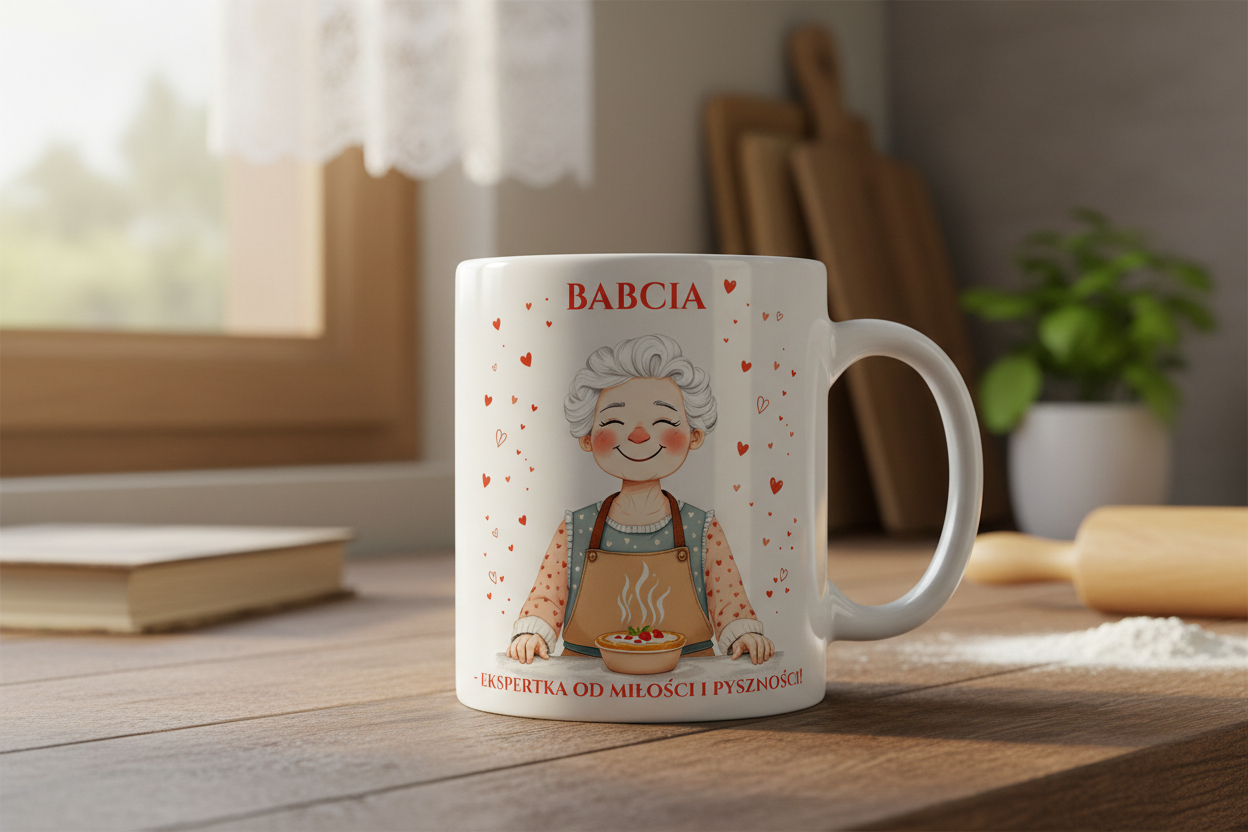 Kubek dla Babci: „Babcia – ekspertka od miłości i pyszności!”,