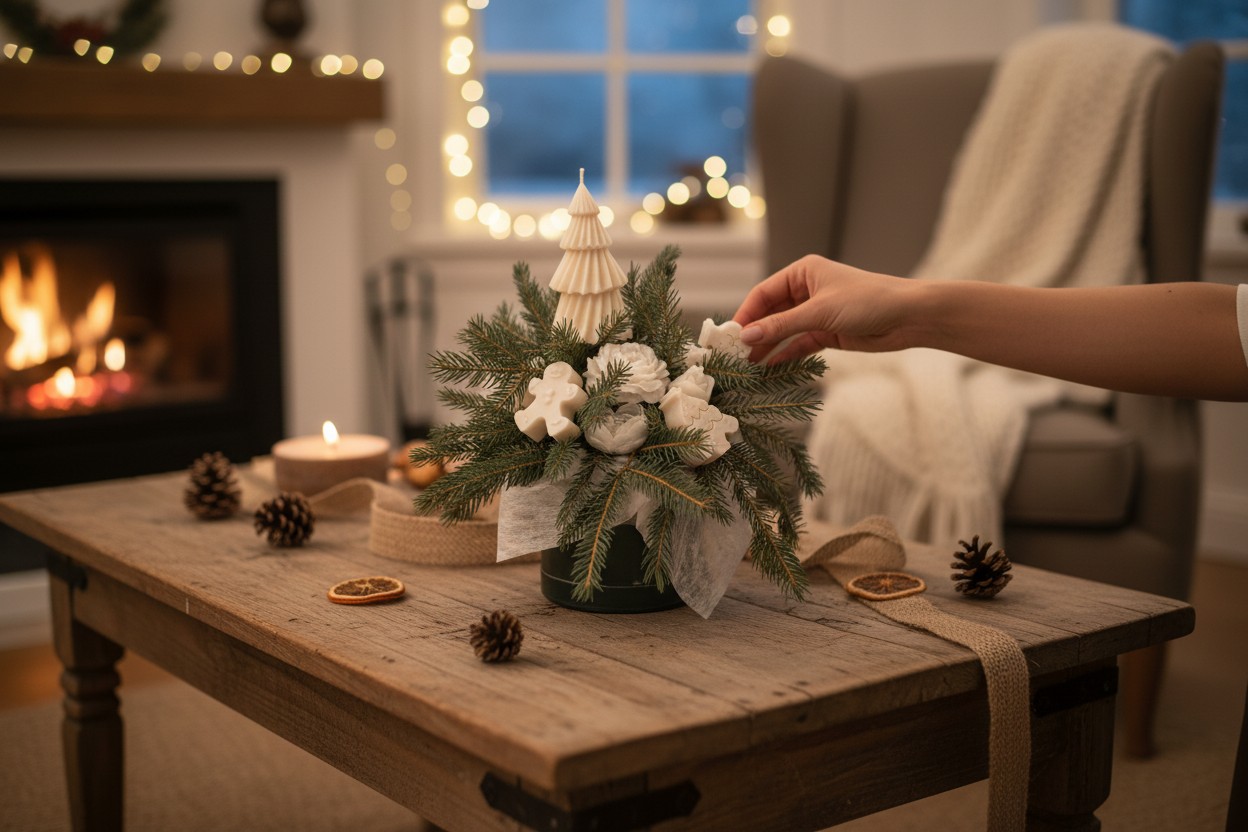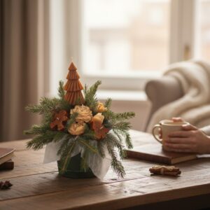 To wyjątkowa, nastrojowa dekoracja, która wprowadza świąteczny klimat już od pierwszego spojrzenia — bez przesady, bez krzykliwości, za to z naturalną elegancją i ciepłem.