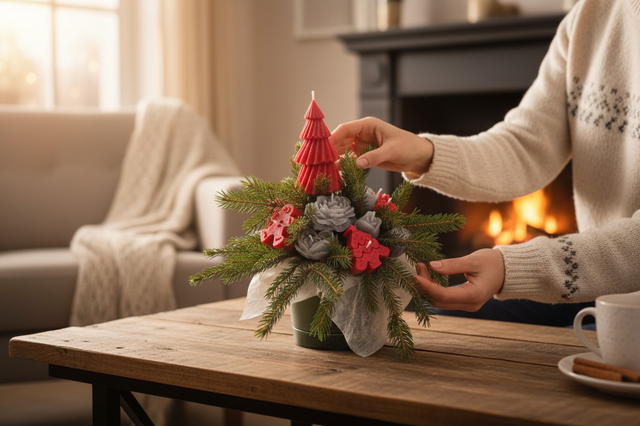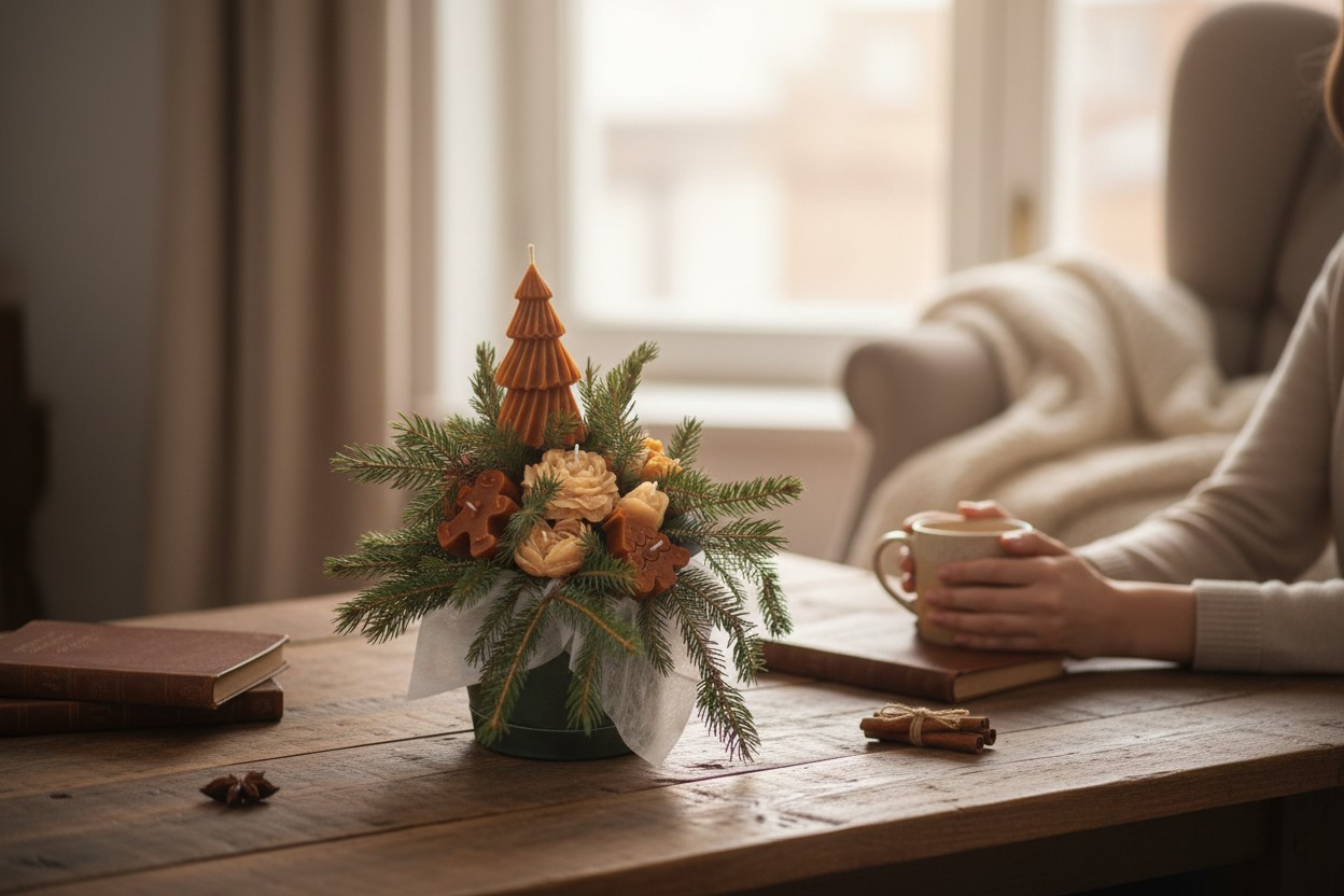 W MAJRAJ wierzymy, że święta tworzą drobne momenty — blask świecy, zapach zimy, delikatność dekoracji i ciepło domu. Zimowa Opowieść to flowerbox, który powstał właśnie z tej myśli. Każda świeca kwiatowa oraz każdy świąteczny element dekoracyjny wykonywany jest ręcznie z wosku, tak aby cała kompozycja wyglądała jak zimowy bukiet ukryty w naturalnym igliwiu.